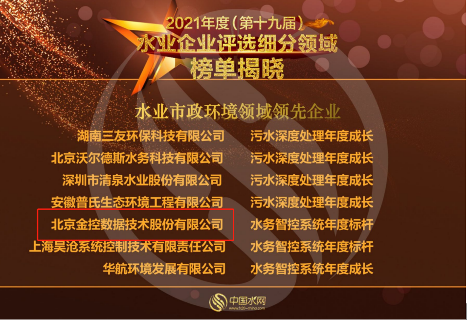 2021水務智控系統年度標桿”稱號,充分體現了行業對金控數據的業務拓展能力、技術創新實力、以及未來可持續發展能力的充分肯定。